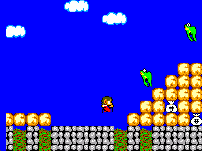 ..and when I say “got lost in”, what I mean is I sat on the sidelines while my older brother clocked the game. Alex Kidd was far too difficult for my developing brain. My hand-eye coordination and ability to recognise typical gaming mechanics at this stage were still in their infancy. I still remember that sad ‘whom whom whom…’ of the ghost floating to the sky.