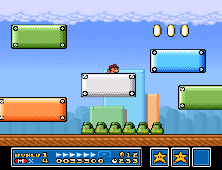 Speaking of secrets, this same playstyle was adopted in Super Mario 3. Every playthrough meant crouching at the white platform and running through the level behind the enemies, eventually reaching the secret door and receiving the warp whistle. I didn’t get far most of the time, but it deviated from the rails.