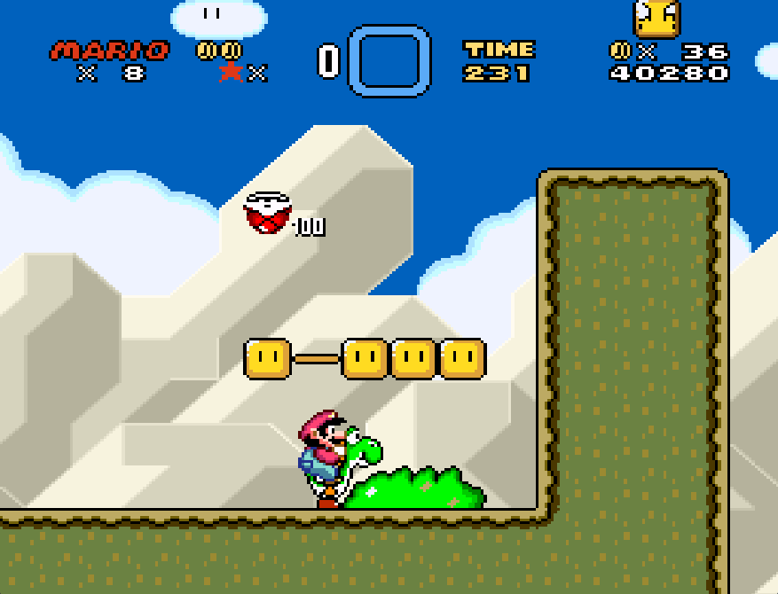 Super Mario World, on the other hand, had a different motivation, and his name was Yoshi. As fun as it was to find Yoshi, feed and grow him, and ride joyfully through the stages, it was equally as painful when I inevitably lost him. Oh, the frustration of chasing him across the screen only to see him fall to his untimely demise, leaving me stranded and emotionally distraught. It was the first of many emotional responses.