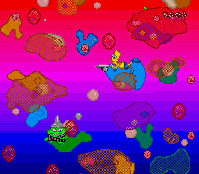 Bart’s Nightmare stimulated my hyper-imaginative mind. The way each level was a different kind of bizarre hooked me in, but with each new colourful distraction, there was a little boy mashing buttons to the beat of his own drum, thinking, ‘what is even happening right now?‘
